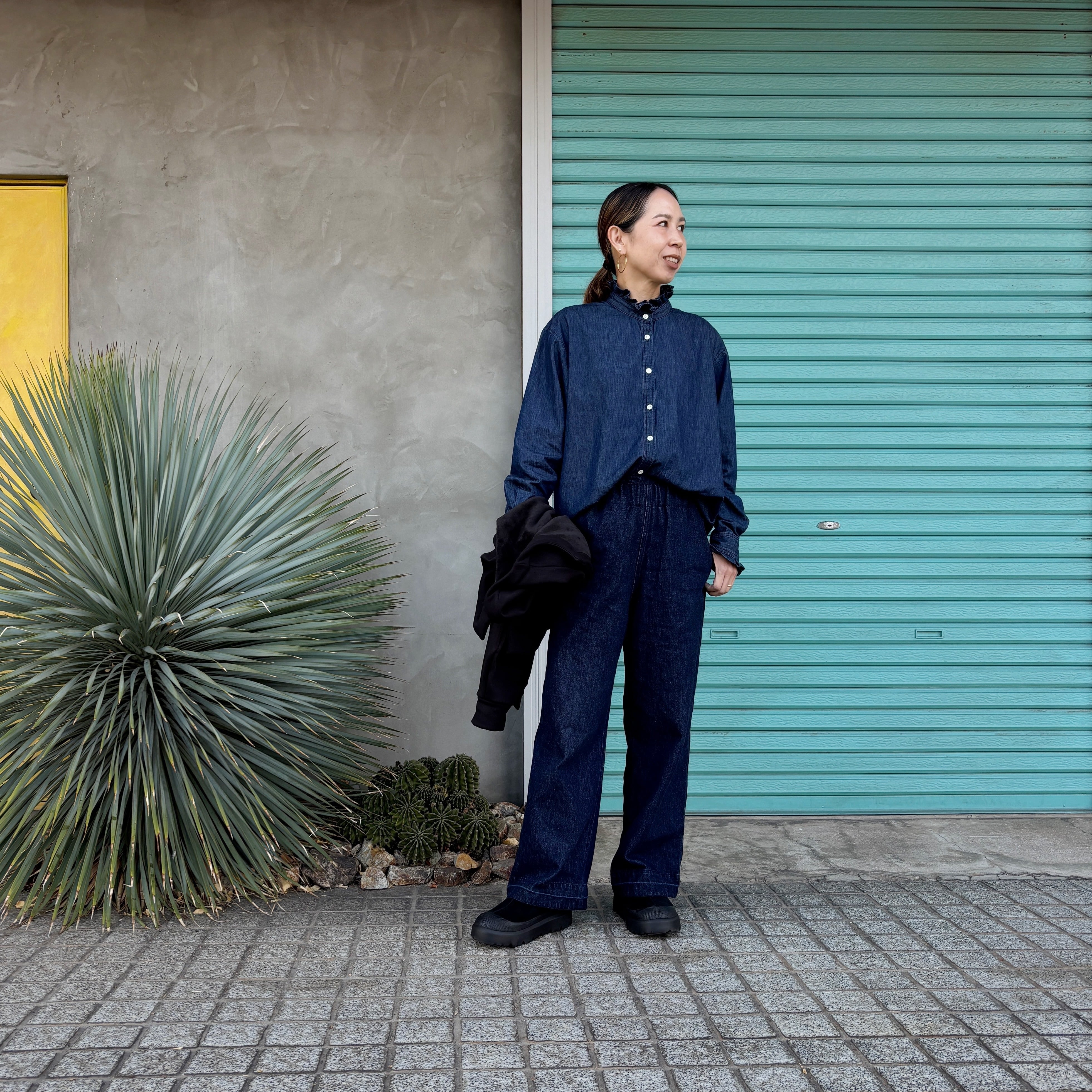 【frill collar denim shirt】https://rivermail.shop/items/68e6e66175fe895916cf12d2