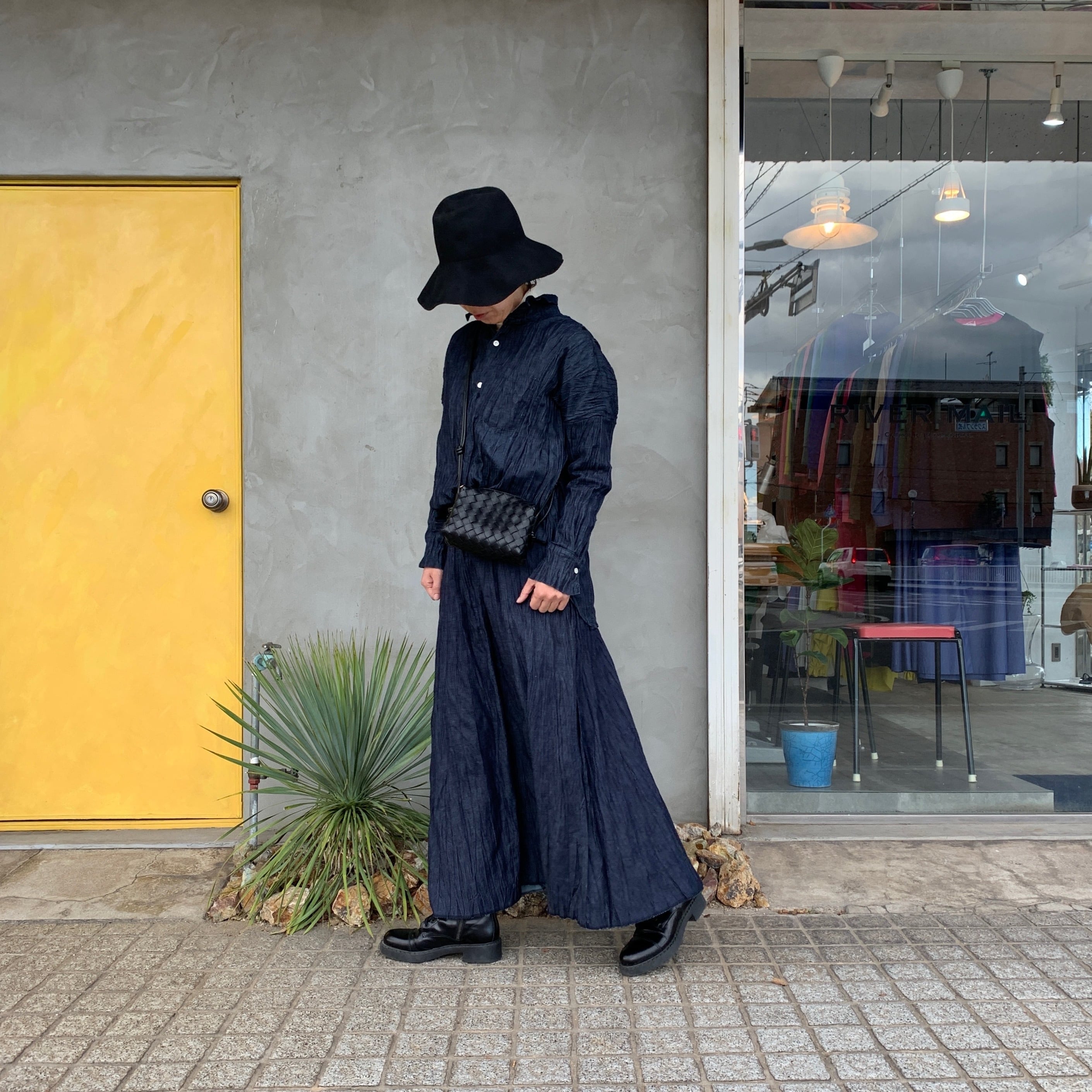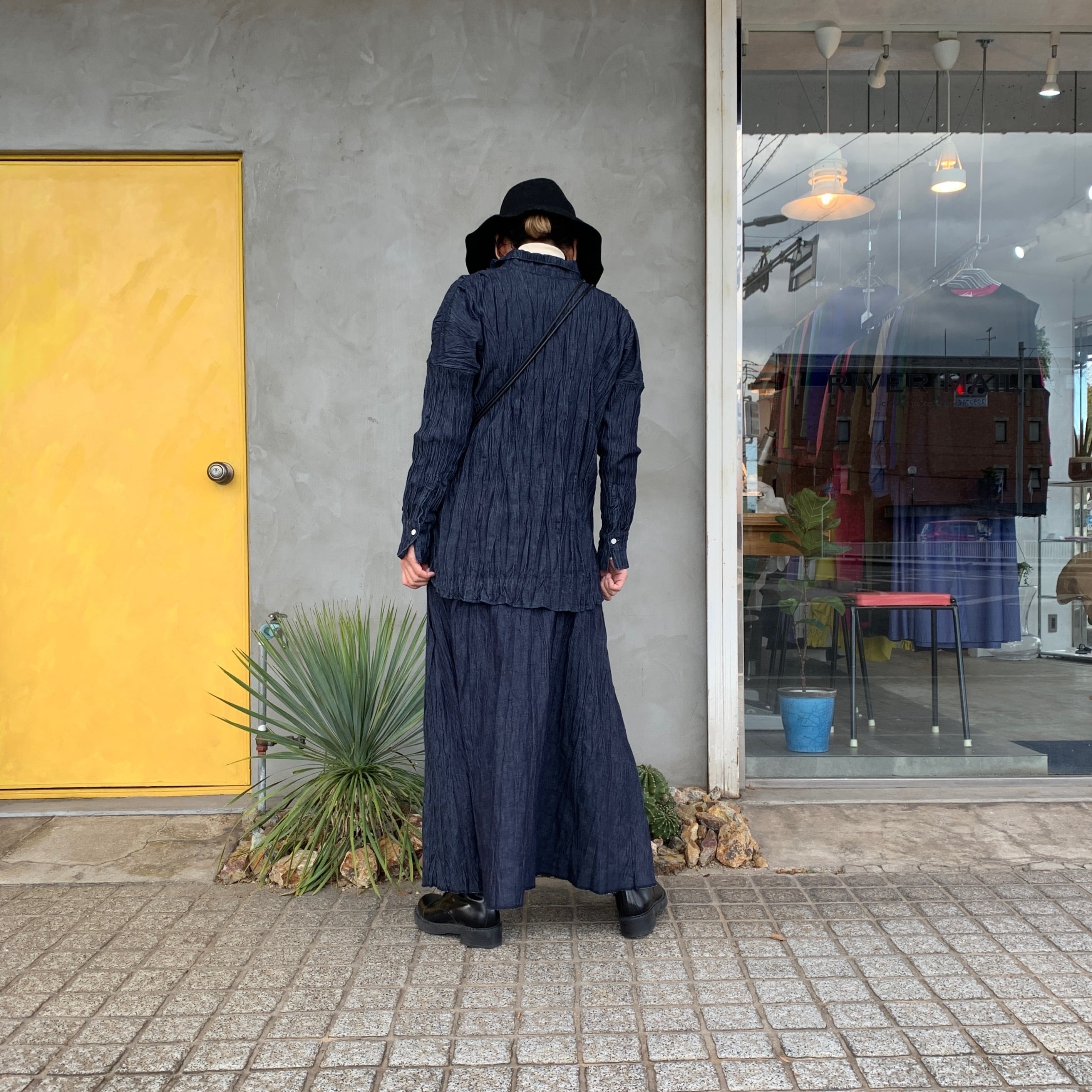 【ベイクド・クリンクル・デニムスカート】オーダー95cm丈