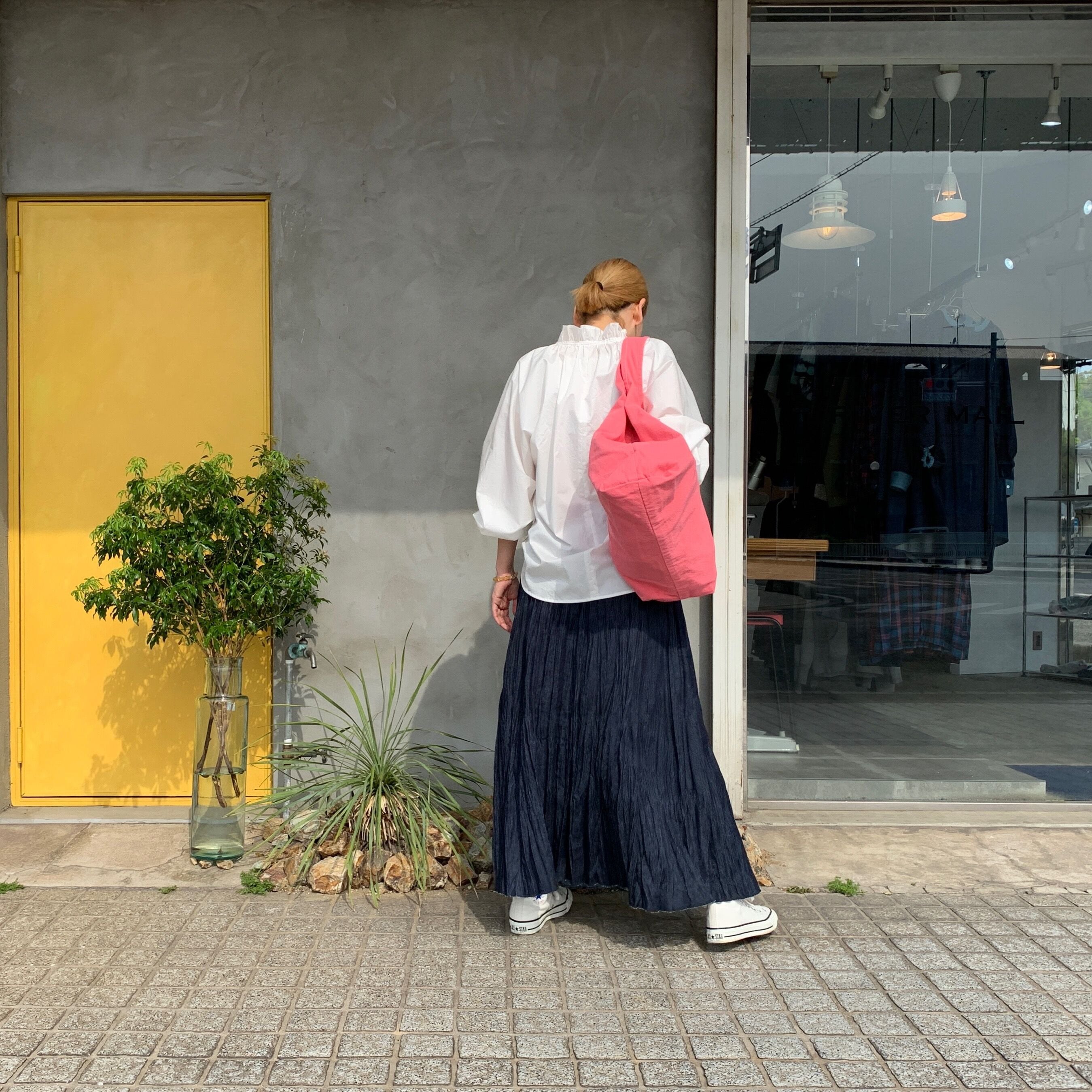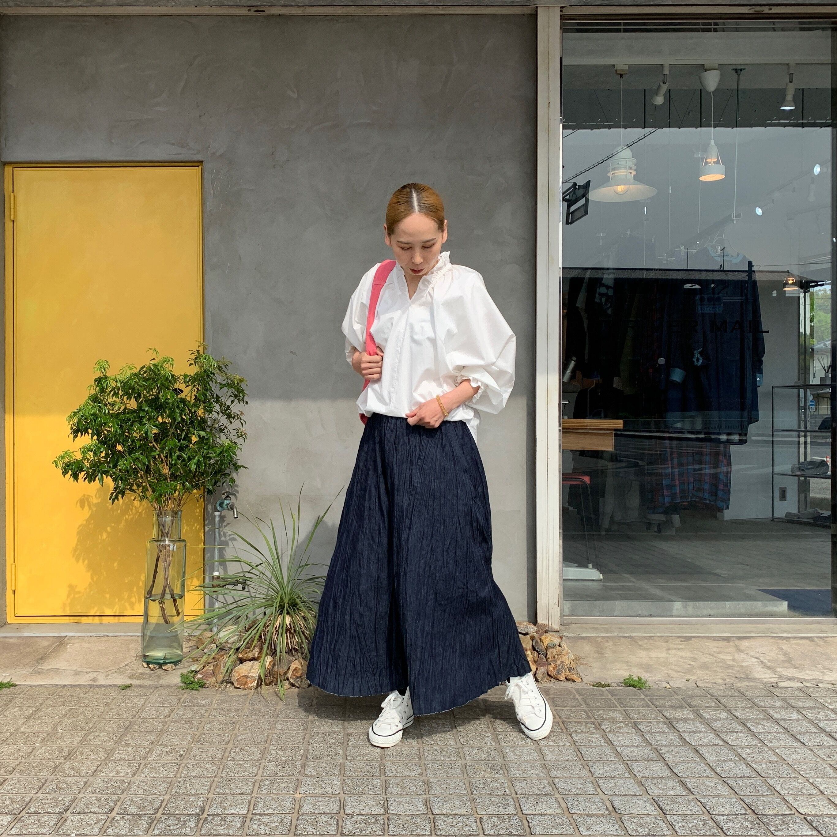 (キッチリとタテにヒダを付けたアコーディオンプリーツはあるんですがナチュラルなシワ感のデニムスカートがない。)